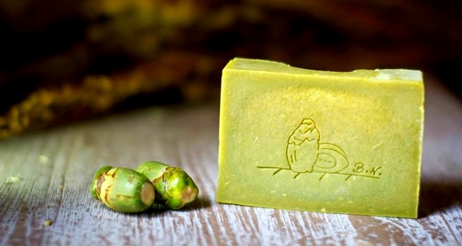 檳榔簡介: 目前所知檳榔是所有南島語系的共同文化,在東南亞,檳榔易被視為超自然與人之間的媒介, 是既神聖又親近的物品,也是原住民重要的祭祀品之一。 使用方法: 先將肌膚弄濕塗抹香皂,在將肌膚上的香皂搓成乳液狀泡泡,讓泡泡停留肌膚大約30秒,等泡泡 不見在將肌膚沖洗乾淨即可。 過敏膚質建議清洗兩次,第一次清潔,第二次讓植物有效成分進入肌膚。 註(本產品獲選2014年12月交通部觀光局九大伴手禮。) 送檢SGS食品及清潔劑及滅菌抗菌實驗。編號:UG/2014/40156 發明專利編號:發明第I486441